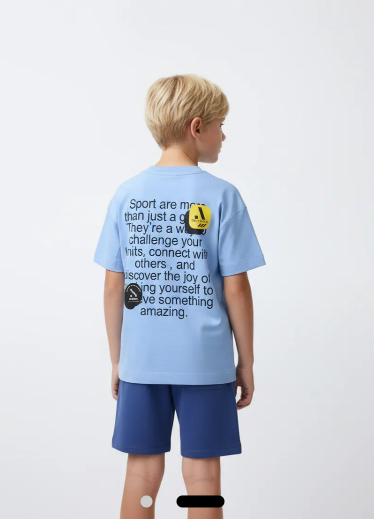 Lagani i udoban sportski komplet za dečake, savršen za igru i male sportske pobede. Sastoji se od majice i šortsa koji omogućavaju slobodno kretanje i lakoću tokom svakog pokreta.